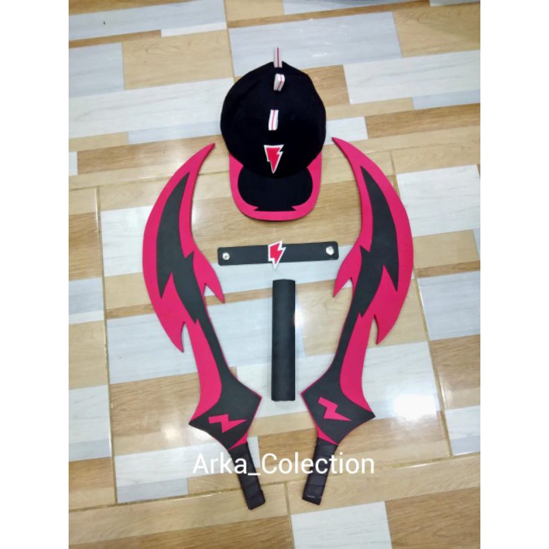 Paket topi + jam tangan + rompi + pedang boboiboy halilintar galaxy. Tetakan halilintar · pedang mega halilintar ;
